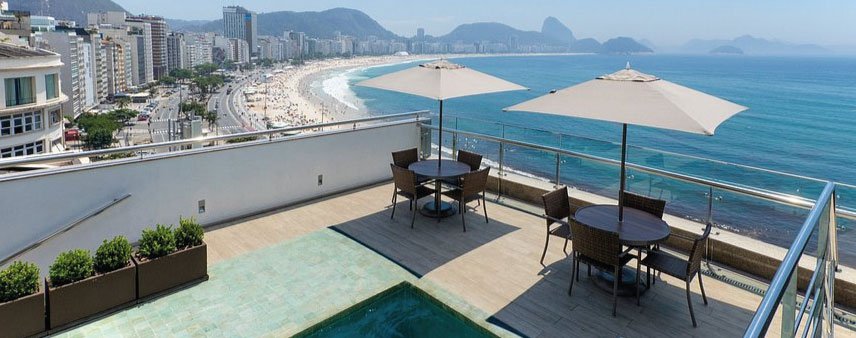 El hotel cuenta con un rooftop desde donde podrás apreciar una de las mejores vistas de Copacabana.